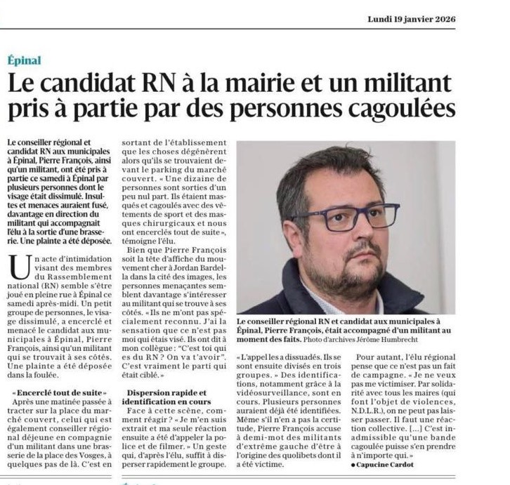 Je tiens à remercier très sincèrement toutes celles et ceux qui m’ont adressé des messages de soutien en très grand nombre suite aux faits survenus samedi à Épinal. Votre solidarité et vos encouragements m’ont profondément touché.